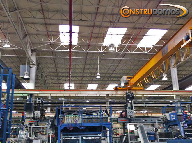 En CONSTRUDOMOS realizamos obra de remodelación o construcción nueva para todo tipo de naves industriales techadas con láminas metálicas o panel sándwich, como parte del ahorro energético y para crear ambientes más propicios para la actividad industrial ofrecemos la implementación de domos tipo arco cañón que pueden ser de policarbonato solido o celular, consiguiendo así iluminación natural que es más económica y agradable para todos los usuarios, acérquese con uno de nuestros asesores y le presentara las opciones que ofrecemos.